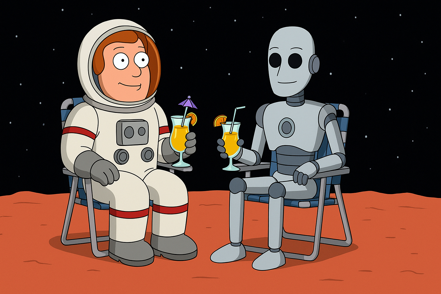 Welcome to the Mars Chronicles, where AI meets existential dread... and maybe a touch of satire. We're diving deep into the red planet, discussing everything from AI therapists to oat milk mutinies. Strap in for a journey that's equal parts absurd and thought-provoking.
